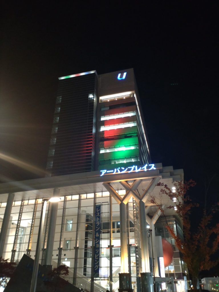 アーバンプレイスの外観も赤と緑のクリスマスカラーに変わっています!!